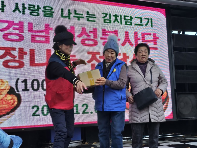 대설인 이날 쌀쌀한 날씨 속에서도 자신은 이른 아침부터 조합원, 예비 조합원들과 함께 모여 절임 배추 한 잎 한 잎 양념을 바르고 비닐에 담고 포장하여 동네 노인회관 등을 찾아 김치를 전달했다