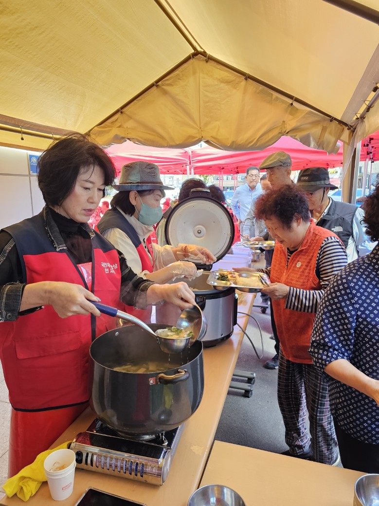 특히 이날은 무료 급식도 함께 있어 김장하기가 끝나자 바로 따끈한 돼지 수육과 시래깃국, 삼색나물, 생미역 등으로 맛있는 식사를 어르신 250분께 대접을 하고 돌아가시는 어르신들에게 김장 김치 한 쪽씩을 나눠드렸다.