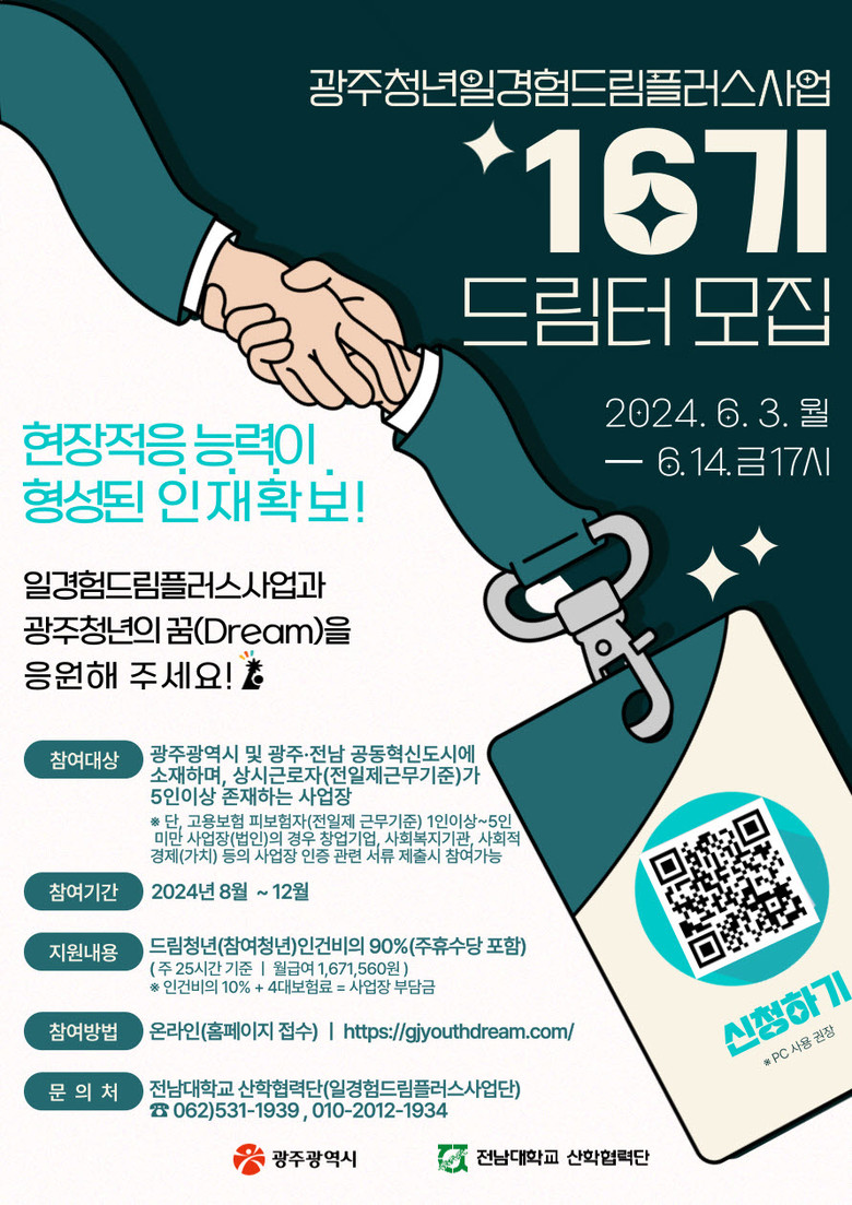 ※ 문의처: 전남대학교 산학협력단(일경험드림플러스사업단) 062-531-1939, 010-2012-1934