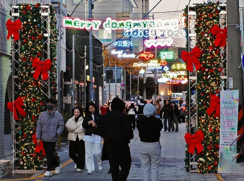 동리단길로 불리는 동명동 거리에서도 크리스마스 분위기가 한창이다.