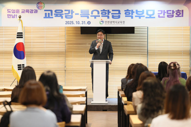[인천 세계타임즈=심하린 기자] 도성훈 인천광역시교육감 도성훈)은 31일 특수교육 현장의 소리를 듣고 특수교육 개선 방향을 모색하기 위해 학부모와 교육청 관계자 등 120여 명이 함께하는‘2025 교육감-특수학급 학부모 간담회’에 참석했다.