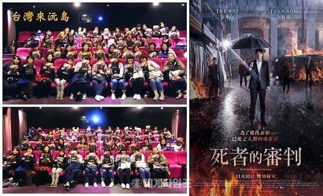 온라인상영관 박스오피스 1위를 차지해 안방극장을 점령하고 북미에 이어 대만에서 '死者的審判'이라는 타이틀로 개봉한 미스터리 영화 '희생부활자' 대만 단체 관람 인증샷이 SNS에 올라와 화제가 되고 있다.
