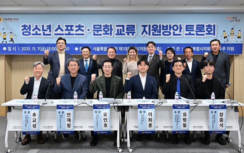 [서울 세계타임즈=이장성 기자] 청소년이 뛰어놀 운동장은 줄고, 서로의 문화를 배우는 무대가 더 필요해지는 시대다. 이에 서울특별시의회 아이수루 문화체육관광위원회 부위원장(더불어민주당·비례)이 7일 오후 3시, 서울시의회 의원별관 제1대회의실에서 ‘청소년 스포츠 문화교류 지원 방안 토론회’를 개최했다.