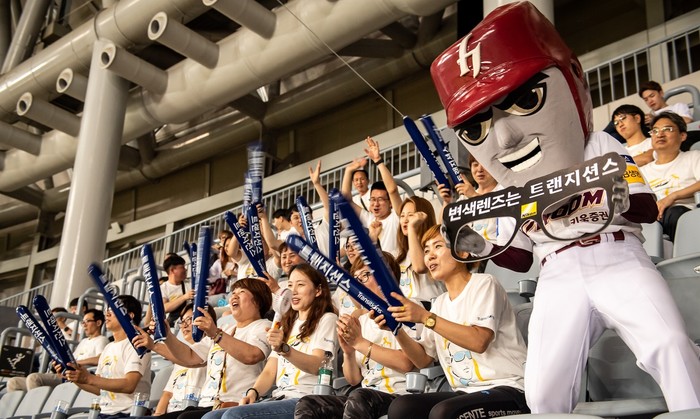 | ▲에실로코리아 임직원 및 안경사들이 키움히어로즈를 응원하고 있다.(사진제공=에실로코리아) |
