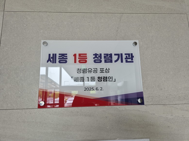 한편, 감사위원회는 이날 보건환경연구원에 직접 방문해 ‘세종 1등 청렴기관’ 현판을 전달했으며, 하반기 중 청렴기관 2곳과 청렴인 2명을 추가로 선정할 계획이다.