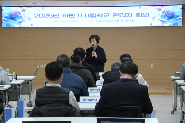 [남양주시 세계타임즈=송민수 기자] 구리남양주교육지원청(교육장 서은경)은 12월 15일(월) 관내 사립학교의 투명하고 효율적인 재정 운영을 위해 사립학교 관리자 회의를 개최했다. 이번 회의는 사립학교와 교육지원청 간 소통과 협력 체계를 강화하고, 교비회계 재정 운용의 효율성을 높이기 위해 마련되었다.