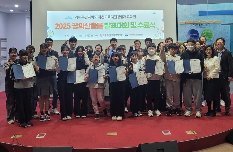 [강원도 세계타임즈=김민석 기자] 화천교육지원청(교육장 문영숙)은 11월 14일(금) 화천생태영상센터 지하 공연장에서 ‘2025 화천영재교육원 창의산출물 발표회 및 수료식’을 개최했다.