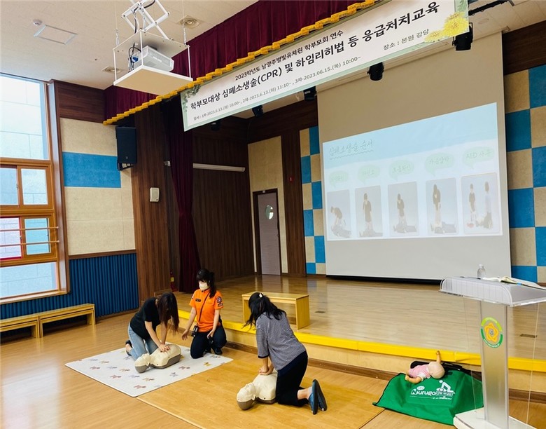 이번 연수는 남양주별빛유치원 학부모를 대상으로 남양주소방서의 협조를 받아 심폐소생술(CPR)과 하임리히법 실습 등을 주요 내용으로 진행되었다.