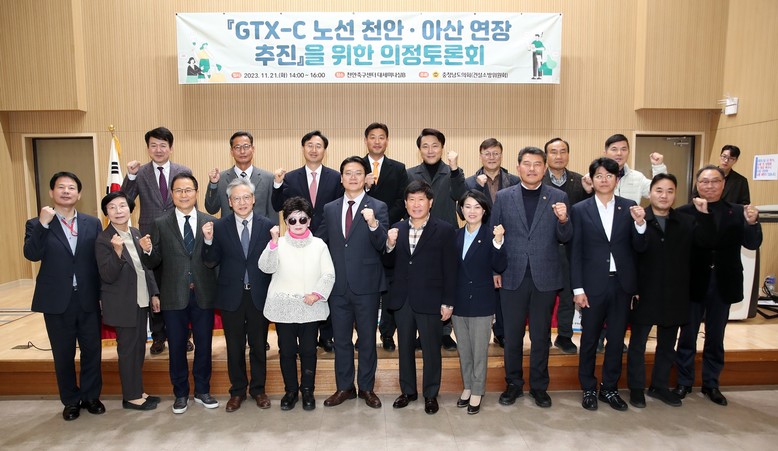 도의회는 21일 천안축구센터에서 신한철 의원(천안2·국민의힘)의 요청으로 ‘GTX-C노선 천안·아산 연장 추진을 위한 의정토론회’를 열고, GTX-C노선 천안·아산 연장 운행의 타당성을 설명하고 추진 방향성에 대해 논의했다.