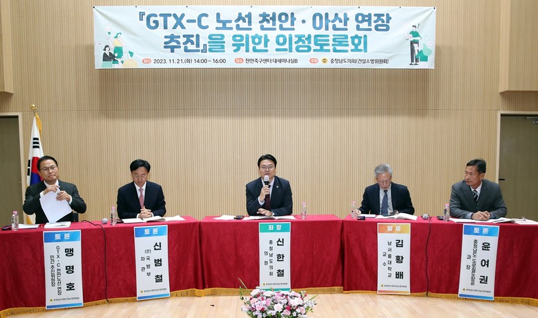 이날 토론회는 충남도의회 신한철 의원이 좌장을 맡고, 남서울대학교 김황배 교수가 주제 발표를 했다. 이와 함께 신범철 (전)국방부 차관, 맹명호 GTX-C 천안노선 연장 민간 추진위원장, 윤여권 충청남도 도로철도항공과장이 토론자로 참여했다.