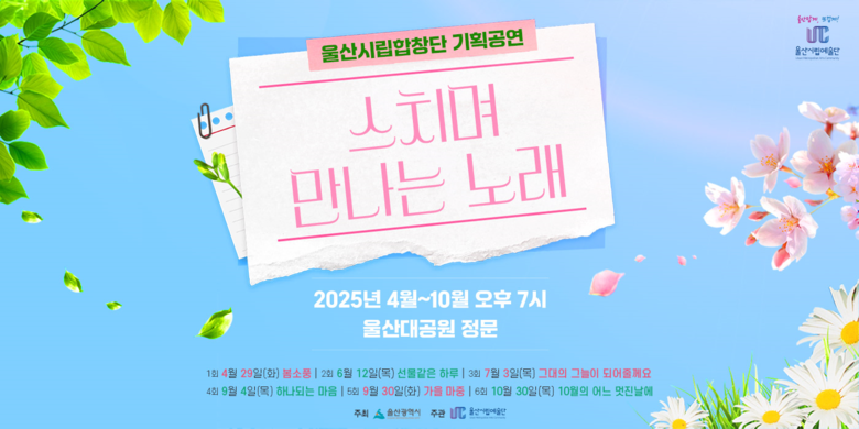 [울산 세계타임즈=이호근 기자] 울산시립합창단(지휘 박동희)이 기획공연 ‘스치며 만나는 노래’의 두 번째 무대로 ‘선물 같은 하루’가 마련된다고 밝혔다.