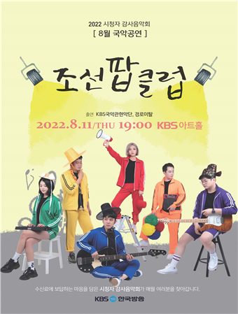 [세계타임즈 = 백진욱 기자] KBS가 시청자들을 위한 2022년 8월 시청자 감사 음악회 ‘웰컴 투 조선 클럽 음악’을 선보인다. 이번 공연은 국악을 중심으로 관객들을 중독성 넘치는 조선의 클럽 음악 세계로 인도할 예정이다.