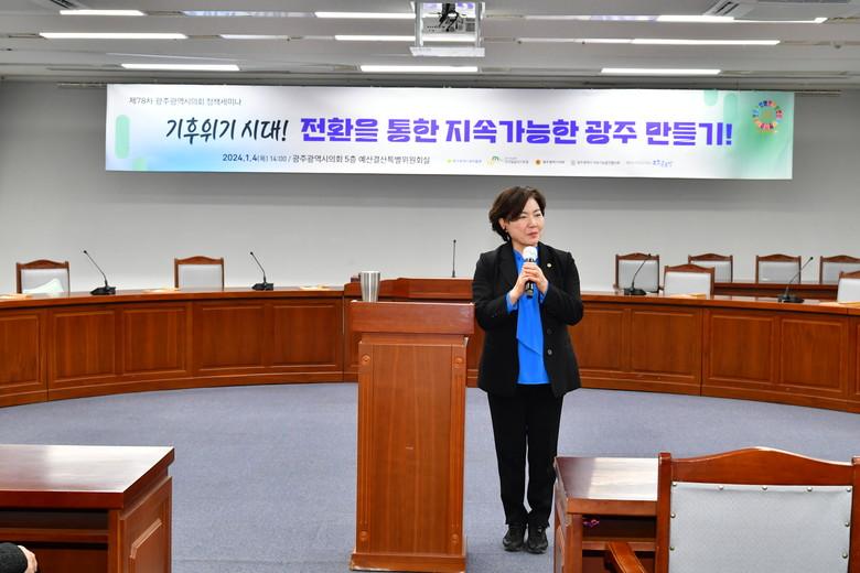 [광주 세계타임즈=손권일 기자] 광주광역시의회 박미정 의원은 지난 4일 시의회 예산결산특별위원회실에서‘기후위기 시대! 전환을 통한 지속 가능한 광주 만들기’라는 주제로 명사 초청 강연을 성황리에 개최했다.