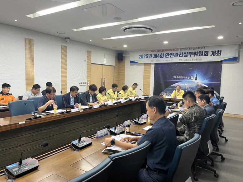 [고흥군 세계타임즈=우덕현 기자] 고흥군(군수 공영민)은 15일 제4회 안전관리 실무위원회를 열고 오는 7월 26일부터 27일까지 2일간, 남열해돋이 해수욕장 일원에 개최되는 ‘2025 고흥 드론 서머비치 페스타’의 안전관리계획을 심의했다고 밝혔다.