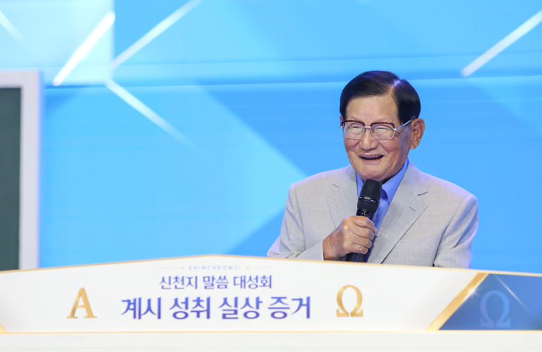 ▲신천지 예수교 증거 장막성전 이만희 총회장이 계시 성취 실상을 증거하고 있다.