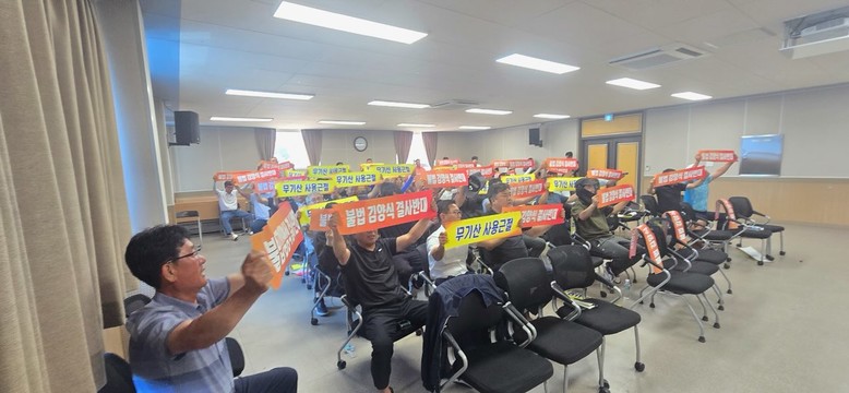 이날 설명회가 끝난 후에는 한국김생산어민연합회 고흥지회 이형모 회장을 비롯한 어업인들이 2026년산 불법 김양식 및 무기산 사용 근절을 위한 결의를 다졌다.