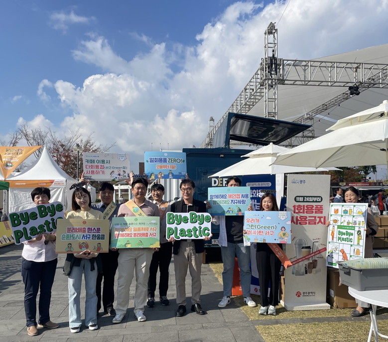 [광주 세계타임즈=손권일 기자] 광주광역시(시장 강기정) 자원순환과와 광주 서구는 3일 상무시민공원 일원에서 열린 광주김치축제와 푸드페스타 행사장에서 1회용품 사용 줄이기 캠페인을 펼쳤다.