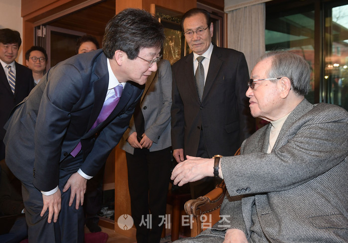 대선 출마를 선언한 바른정당 유승민 의원이 29일 서울 중구 신당동 김종필 전 국무총리 자택을 예방, 김 전 총리와 대화하고 있다. 2017.01.29.