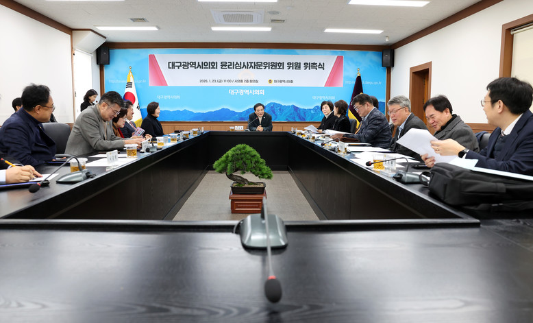[대구 세계타임즈=한윤석 기자] 대구광역시의회(의장 이만규)는 1월 23일(금) 오전 11시, 시의회 2층 회의실에서 ‘대구광역시의회 윤리심사자문위원회’ 위원 위촉식을 개최했다.