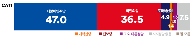 특별조사B 정당지지도: 전화면접조사 결과 ‘더불어민주당’ 47.0%, ‘국민의힘’ 36.5%로 10.5%p격차