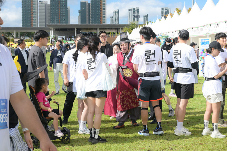 지난해에 이어 두 번째로 열린 ‘2025 한글런’은 1만 5,000여 명이 참여해 한글날을 상징하는 10.9㎞, 세종대왕 나신 날을 기념하는 5.15㎞를 각각 달리며 한글 창제의 기쁨을 나눴다.