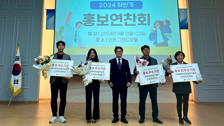 [광주 세계타임즈=손권일 기자] 광주광역시농업기술센터는 지난 21일 경북 안동시 그랜드호텔에서 열린 농업진흥청 주관 ‘농촌진흥산업 홍보연찬회’에서 ‘2024년 농촌진흥기관 홍보 분야 평가’ 우수기관으로 선정됐다.