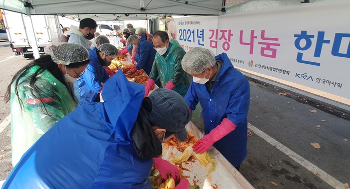 이번 ‘김장 나눔 행사’는 한국마사회 임직원을 비롯해 바로마켓 운영사인 한국농식품법인연합회, 바로마켓 자치회 등 봉사자 약 30명이 참여했다. 방역지침에 따라 소규모로 개최됐으며, 봉사자들의 온정으로 650kg 분량의 김장김치가 완성됐다. 바로마켓 행사장에서 만들어진 김장김치는 과천시노인복지관에 전달됐다. 전달된 김장김치는 과천시 소외계층 어르신들에게 혹한기 먹거리로 전달될 예정이다.