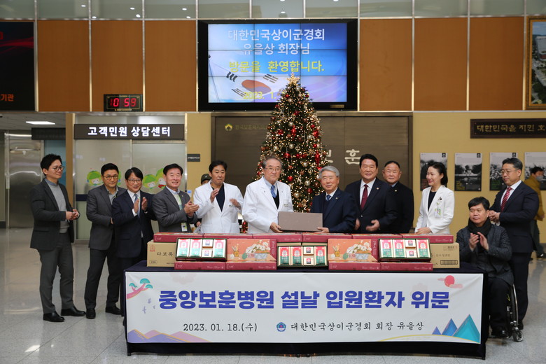 [세계타임즈 = 백진욱 기자] 대한민국상이군경회 유을상 회장은 2023년 01월 18일 민족의 대명절 설날을 맞이하여 서울중앙보훈병원을 찾아 조국을 위해 희생하여 상이를 입고 입원 중인 국가유공자분들에게 빠른 쾌유를 기원하며 감사의 마음을 담아 위문품을 전달했다.