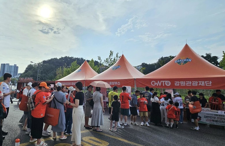 현장에서는 ▲인스타그램 팔로우 확인 후 진행되는 ‘강원 방문의 해’ 응원 소리 데시벨 측정 ▲절대음감 게임 ▲원정 응원단 대상 사회관계망서비스 구독(SNS 팔로우) 이벤트가 함께 운영되며 다양한 연령층의 팬들이 즐겁게 참여했다. 팬들은 블루투스 스피커, 미니 캐리어, 쿨타올 등 실용적인 경품을 받으며 경기 전부터 열정적인 분위기를 경험했다.