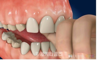 이 습관이 지속되면 앞니가 앞으로 튀어 나오면서 위아래 앞니가 서로 벌어지는 개방교합이 될 수 있다.