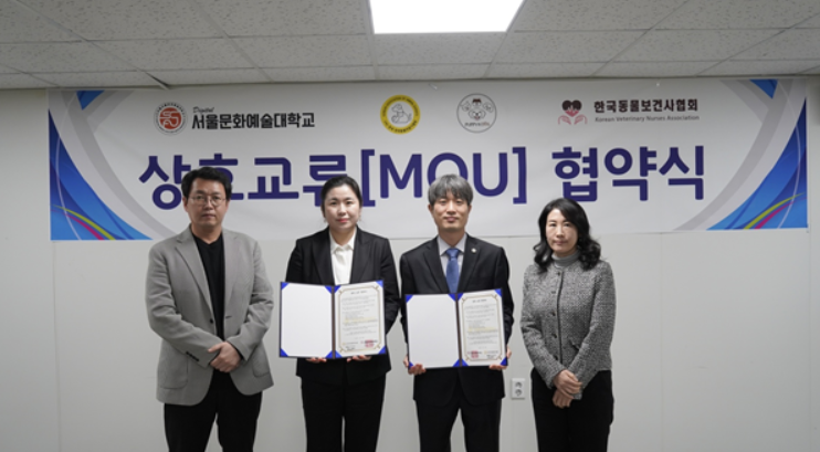[세계타임즈 백진욱 기자] 디지털서울문화예술대학교 (총장 이종찬 이하 서울문화예술대)와 (사)한국반려동물전문가협회가 지난 1월26일 상호교류협약(MOU)을 체결했다.