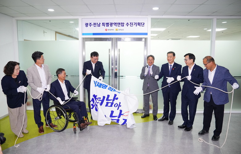 참석자들은 이날 행복회의실 앞에서 ‘광주·전남 특별광역연합 추진기획단’ 현판을 걸고, 320만 시·도민 상생·공존을 위한 광주·전남의 새로운 성장기회를 만들겠다고 다짐했다.