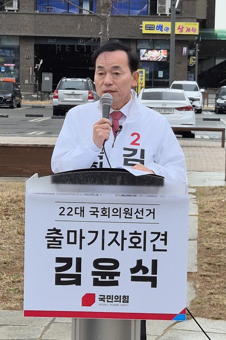 [세계타임즈 = 백진욱 기자] 김윤식 전 시흥시장이 국민의힘 소속으로 국회의원 선거에 출마하겠다고 공식 발표했다. 25일 조정식 현 국회의원의 선거사무소 앞에서 열린 기자회견에서 김 후보는 출마 배경과 시흥시를 위한 계획을 공유했다.