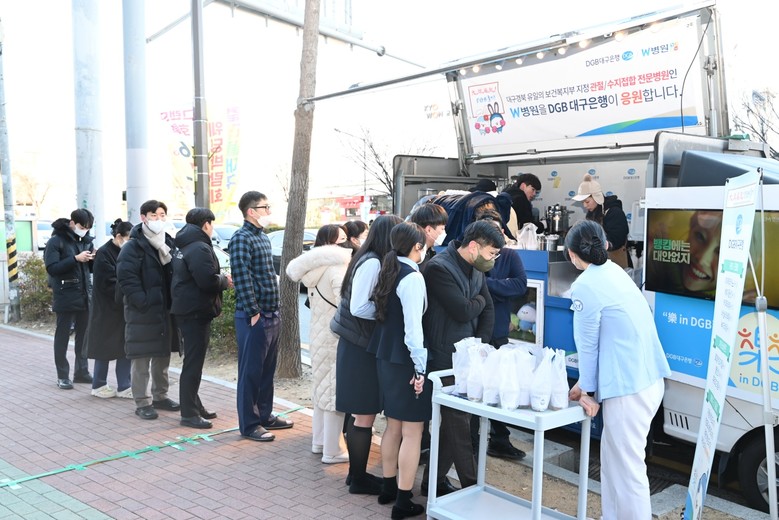 지역 대표 기업으로 지역과 함께하는 다양한 업체를 찾아 현장의 소리를 듣고 밀착 사회공헌활동을 실시하고 있는 DGB대구은행은 지역민의 아픔을 함께하는 지역 병원을 꾸준히 찾아 지원해왔다. 특히 코로나 19 발발 이후에는 의료진의 사명감으로 일선에서 최선을 다하는 의료진을 위해 푸드 트럭 운영, 마스크 및 냉방 용품 기부 등의 다양한 활동을 지속해왔다.
