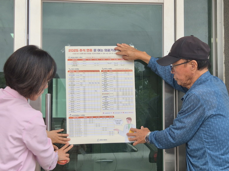 연휴 기간 응급환자 발생 시 신속한 대응을 위해 응급의료기관 및 문 여는 보건기관, 병의원, 약국의 운영 현황을 점검하고, 군민들이 필요한 정보를 쉽게 확인할 수 있도록 마을회관에 포스터를 부착하고 군 대표 누리집(홈페이지)과 사회관계망서비스(SNS)를 통해 안내하는 등 홍보를 이어 갈 계획이다.