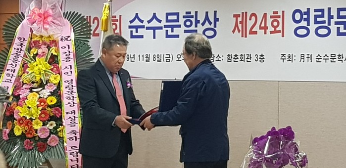 지난 11월 8일 서울대학교 의과대학 함춘회관 3층에서 개최된 제24회 영랑문학상 시상식에서 이강흥 시인이 대상을 수상하는 영예를 안았다.