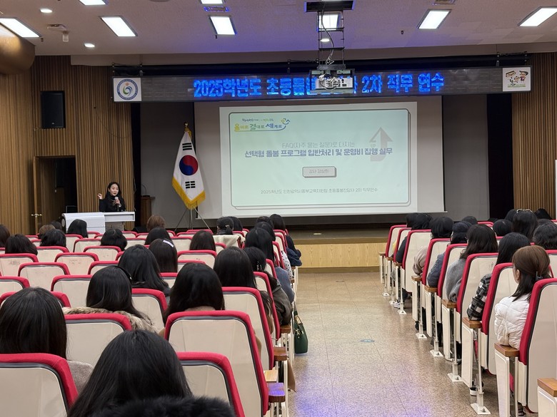 [인천 세계타임즈=심하린 기자] 인천동부교육지원청(교육장 김기춘)은 18일 초등돌봄전담사 80여 명을 대상으로 ‘돌봄교실 운영 실무역량 강화 연수’를 진행했다.