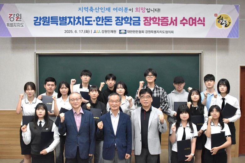한편, 도‧한돈 장학금은 2022년부터 매년 강원특별자치도와 대한한돈협회가 각 1,000만 원씩 기금을 공동 출연하여 운영 중인 제도로, 도내 축산 관련 고등학교 및 대학교 재학생을 대상으로 최대 100만 원의 장학금을 지급하고 있으며, 올해까지 총 100여 명의 축산 인재를 선발·지원해 왔다.