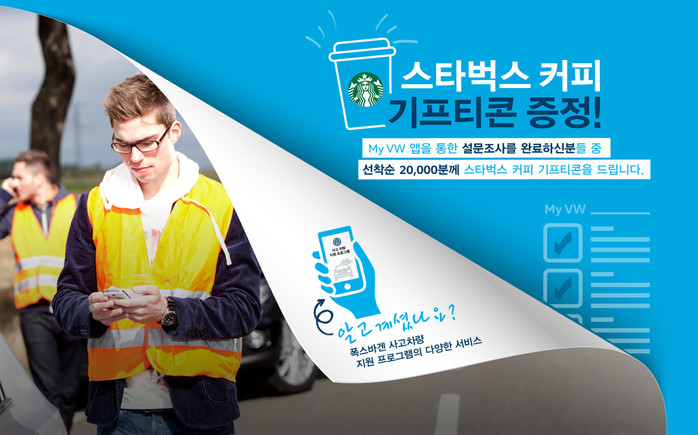 폭스바겐코리아는 마이 폭스바겐 앱 가입 및 차량등록 고객들을 대상으로 설문에 참여한 선착순 2만명에게 스타벅스 커피 기프트콘을 증정하는 이벤트도 함께 진행한다. 설문조사 이벤트에 참여하고 싶은 고객은 9월 30일까지 마이 폭스바겐 앱에 접속한 후 로그인 하면 나타나는 온라인 설문 팝업을 누르면 된다. 간단한 설문조사를 마치면 이벤트에 자동으로 응모된다.