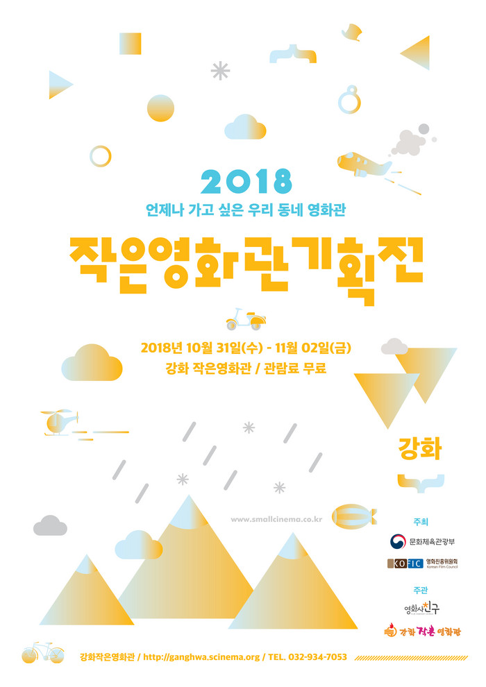 [강화군=세계타임즈 심동윤 기자] 언제나 가고 싶은 우리 동네 영화관 ‘2018 작은영화관 기획전’이 인천광역시 강화를 찾는다. 오는 31일(수)부터 내달 2일(금)까지 3일간 개최되는 ‘2018 작은영화관 기획전_강화’는 6개 섹션, 7편의 영화를 총 11회 상영하며, 2회에 걸친 교육 프로그램도 진행된다.