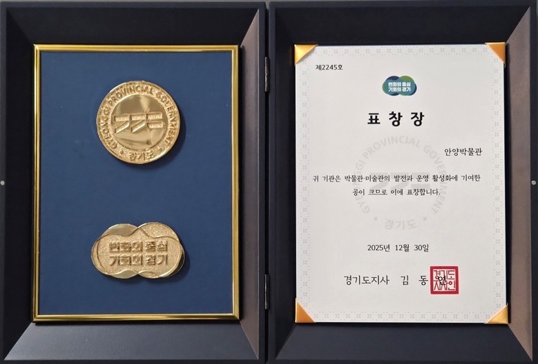[안양시 세계타임즈=송민수 기자] (재)안양문화예술재단(이사장 최대호)은 안양박물관이 2025년 박물관·미술관 활성화 유공 분야 ‘단체’부문에서 경기도지사 표창을 수상했다고 29일 밝혔다. 표창 수여식은 경기도박물관협회 주최로 지난 27일 개최됐다.