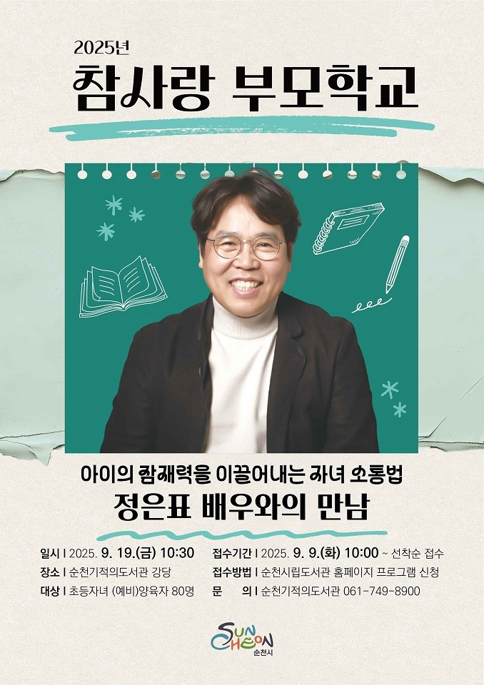 참여 신청은 오는 9일 오전 10시부터 선착순 접수로 진행되며 순천시립도서관 누리집(https://library.suncheon.go.kr)에서 온라인 신청이 가능하다. 자세한 사항은 순천시립도서관 누리집을 참고하거나 순천기적의도서관(061-749-8900)으로 문의하면 된다.