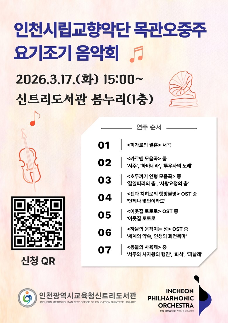 이번 음악회는 인천시립교향악단과 협업해 지역 주민에게 수준 높은 클래식 공연 향유의 기회를 제공하고, 도서관을 지역 문화예술의 거점 공간으로 활성화하고자 마련했다.