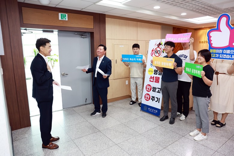오형열 의장은 “이번 캠페인을 통해 명절 분위기 속에서도 공직자로서의 본분을 잊지 않고 청렴한 의정활동을 실천하자는 의미를 다시 한번 강조했다"며 "군민들에게 신뢰받는 의회를 만들기 위해 지속적인 노력을 기울이겠다"고 말했다.