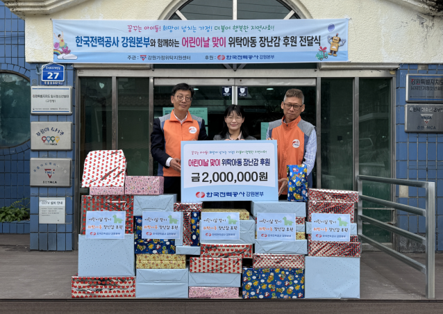 한국전력공사 강원본부 사회봉사단은 어려운 환경에 놓인 꿈나무 아이들이 행복한 어린이날을 보내길 바라는 마음을 담아 200만 원 상당의 장난감을 전달했다.