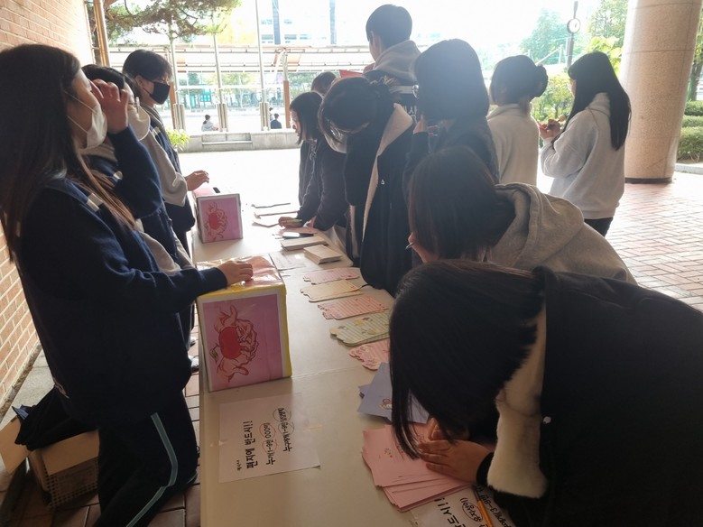 행사를 주관한 또래상담자는 준비에서부터 물품을 배달하는 과정까지 어려움이 있었지만 많은 학생이 참여해주어 보람되었다고 소감을 밝혔다.