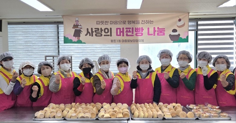 신혜정 왕조1동장은 “매년 이어지는 머핀빵 나눔이 지역 어르신과 아이들에게 작은 행복이 되길 바란다”며 “앞으로도 주민과 함께 다양한 나눔 활동을 추진해 따뜻한 공동체를 만들어 가도록 노력하겠다”고 말했다.