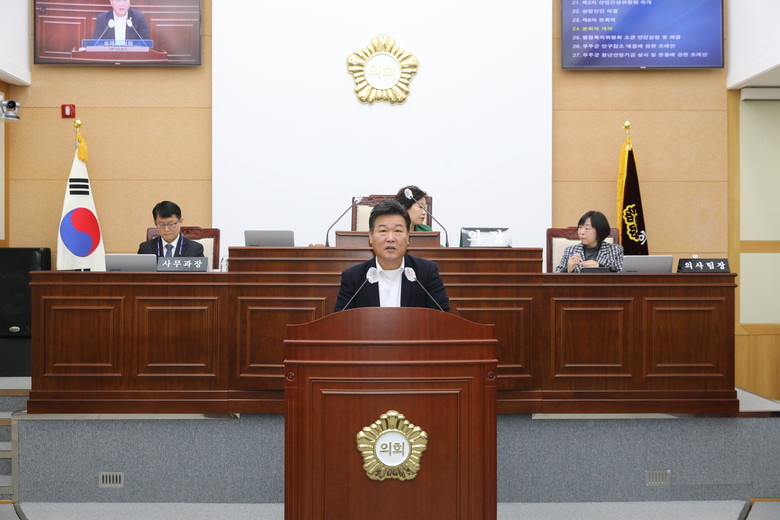 최근 관심이 부쩍 높아진 답례품 선정 방안도 나왔다. 무주만의 특색과 사연이 담긴 답례품을 개발해야 한다고 말한 송재기 위원장은 “태권도원이 있고 국제태권사관학교가 설립될 예정인 무주군이 고향사랑기부제를 통해 태권도 고장의 이미지를 부각시킬 수 있다”고 제안했다. 이어 “고향사랑기부제가 무주의 지역경제를 살리고 관계인구가 증가하는 긍정적 효과를 가져오도록 노력하겠다”며 5분 발언을 마쳤다.