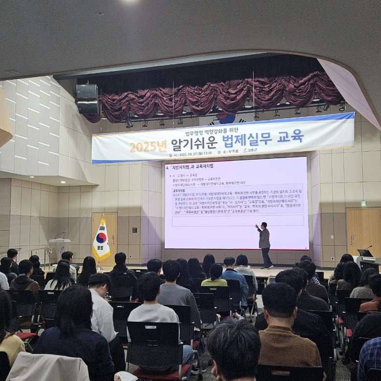 [고흥군 세계타임즈=우덕현 기자] 고흥군(군수 공영민)은 지난 27일 고흥군청 우주홀에서 군 소속 공직자 100여 명을 대상으로 자치법제에 대한 이해도 향상과 역량 강화를 위한 ‘2025년 알기 쉬운 자치법제 실무교육’을 실시했다고 밝혔다.