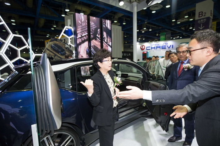 | ▲ EV 트렌드 코리아에서 BMW 뉴 i3를 관람 중인 김은경 환경부 장관 |